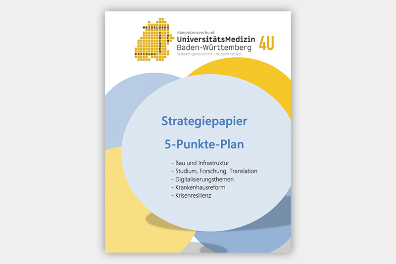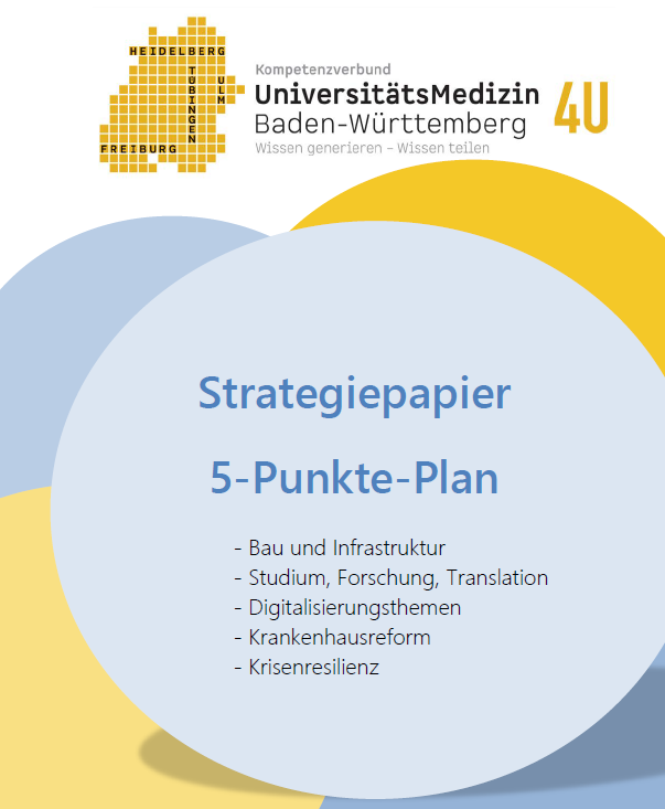Der Kompetenzverbund Universitätsmedizin Baden-Württemberg (4U) hat einen 5-Punkte-Plan zur Weiterentwicklung der Universitätsmedizin im Land erarbeitet, das zentrale Handlungsfelder für die kommende Zeit skizziert,